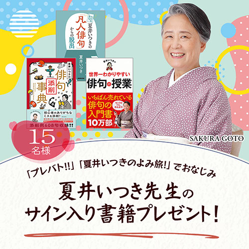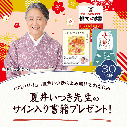 「ジャングルストア」で商品ご購入の方に夏井いつき先生のサイン入り書籍をプレゼント。