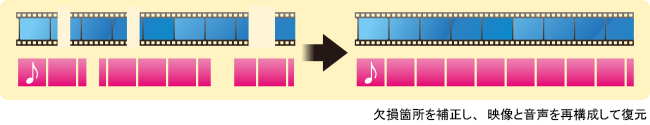 動画ファイルの復元時に、欠損箇所を補正し、映像と音声のズレが起きないように正しく連結する独自のアルゴリズムを実装。